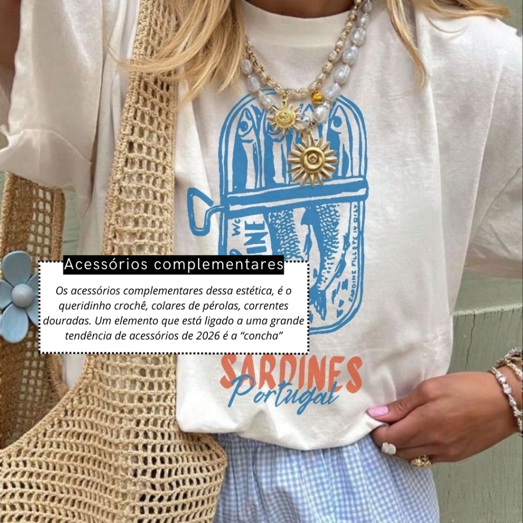 Por que a estampa de sardinha segue em alta em 2026? A moda de 2026 está cada vez mais voltada para expressividade, para o bom humor e para peças que exalam excessos, histórias. E a sardinha encaixa perfeitamente nessa narrativa.